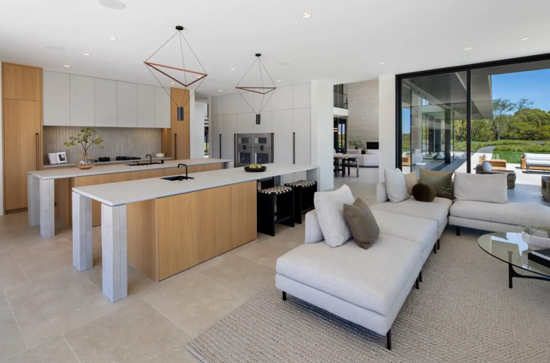 Spacious Living: Grand open-plan interiors with double-volume ceilings and a seamless flow to the outdoor entertainment terrace.