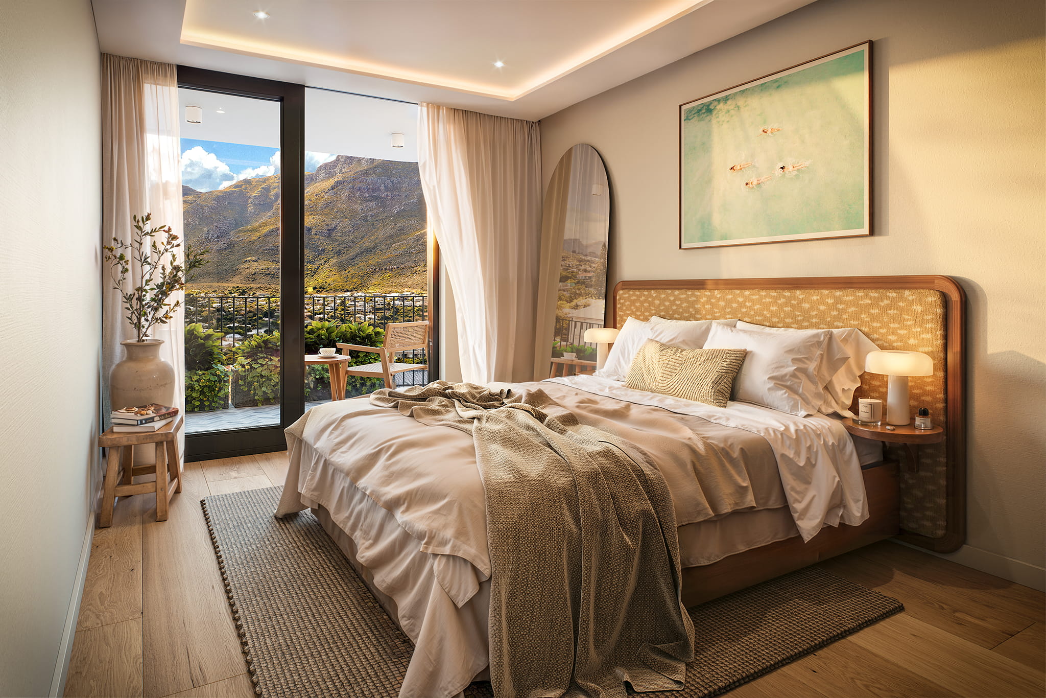 Each bedroom suite brings its own view and style, blending modern comfort with understated luxury. Thoughtful details β from natural textures to custom lighting β make this home both visually striking and emotionally warm.