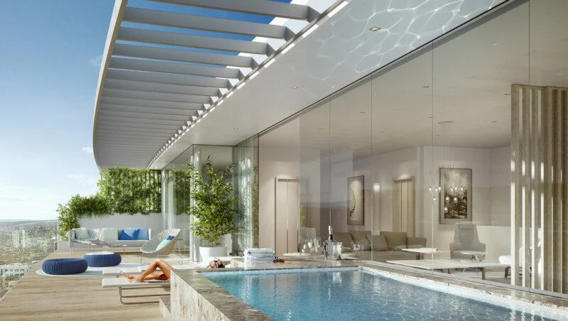 Exclusive Access: Rooftop pool deck, private gym, spa, concierge, and 24-hour security.